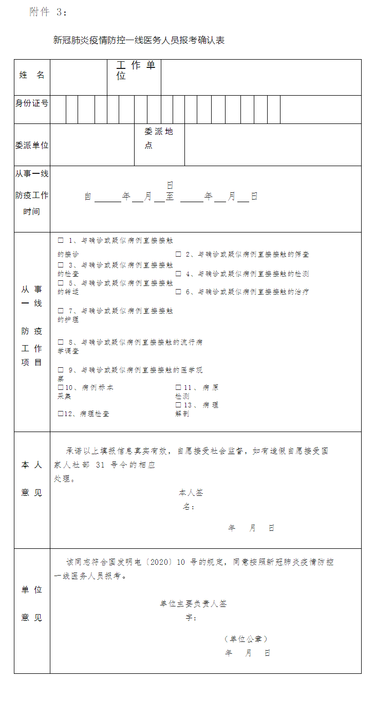 3.新冠肺炎疫情防控一線醫(yī)務(wù)人員報(bào)考確認(rèn)表