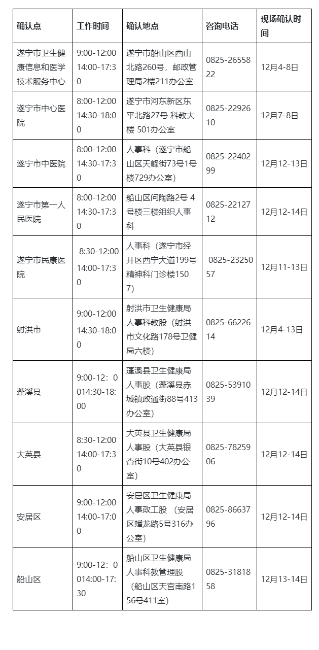 3.其余市級醫(yī)療衛(wèi)生單位(包括高新區(qū)、經(jīng)開區(qū)、河東新區(qū))請直接到遂寧市衛(wèi)生健康信息和醫(yī)學技術(shù)服務中心進行現(xiàn)場確認。