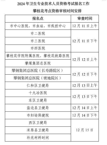 2024年度衛(wèi)生專業(yè)技術(shù)資格考試攀枝花考點(diǎn)公告