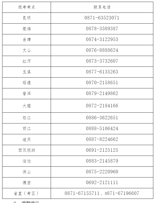 七、考點(diǎn)聯(lián)系電話