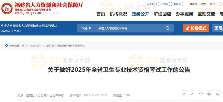 福建省2025年衛(wèi)生專業(yè)技術(shù)資格考試工作的公告