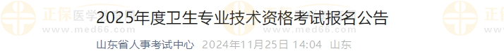 山東省2025年度衛(wèi)生專業(yè)技術(shù)資格考試報名公告公布啦!醫(yī)學(xué)教育網(wǎng)整理具體內(nèi)容如下: