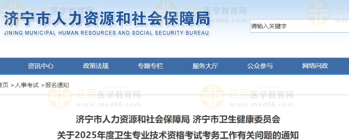 濟寧市2025年衛(wèi)生專業(yè)技術(shù)資格考試考務(wù)工作有關(guān)問題的通知