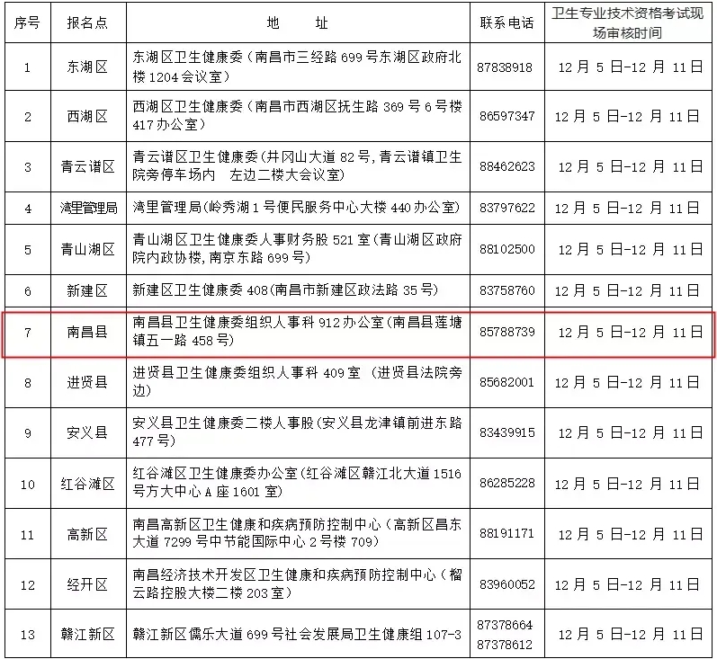 南昌市轄區(qū)各報名點衛(wèi)生專業(yè)技術(shù)資格考試現(xiàn)場確認安排