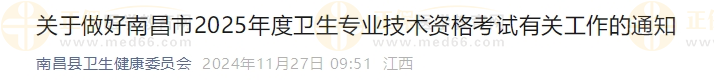南昌市2025年衛(wèi)生專業(yè)技術(shù)資格考試有關(guān)工作的通知