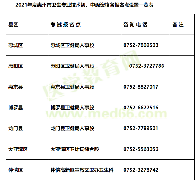 報名工作中遇到的有關(guān)問題,請與各縣區(qū)衛(wèi)生健康局聯(lián)系?;莩菂^(qū)衛(wèi)生健康局人事股:7809508;惠陽區(qū)衛(wèi)生健康局人事股:3727786;惠東縣衛(wèi)生健康局人事股:8827017;博羅縣衛(wèi)生健康局人事股:6622516;龍門縣衛(wèi)生健康局人事股:7789501;大亞灣區(qū)衛(wèi)生和計劃生育局綜合股:5563056,仲愷區(qū)宣教文衛(wèi)辦衛(wèi)生科:3278742。