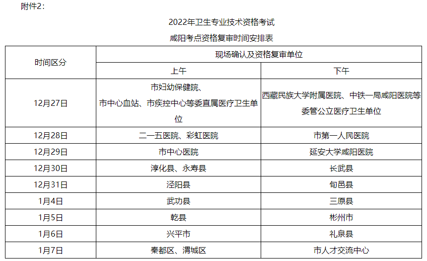 2.《2022年衛(wèi)生專業(yè)技術(shù)資格考試咸陽考點(diǎn)資格復(fù)審時(shí)間安排表》