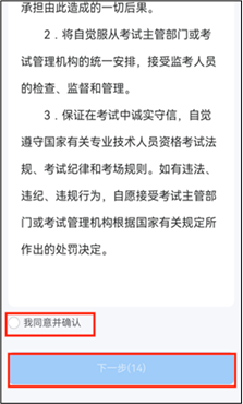 3.認真閱讀報考須知,確保充分知曉考試相關規(guī)定和要求,勾選“同意”后點擊“下一步”,進入報名信息填寫頁面。