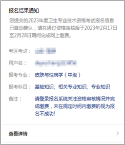 經(jīng)系統(tǒng)核驗所提交信息與2022年不一致的,中國衛(wèi)生人才網(wǎng)微信公眾號將發(fā)出“網(wǎng)上預報名成功通知”;經(jīng)考點核實并予以確認的,中國衛(wèi)生人才網(wǎng)微信公眾號將再次發(fā)出“報名結(jié)果通知”。