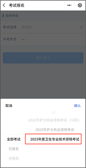 1.點擊【網上報名】,選擇“2023年度衛(wèi)生專業(yè)技術資格考試”。