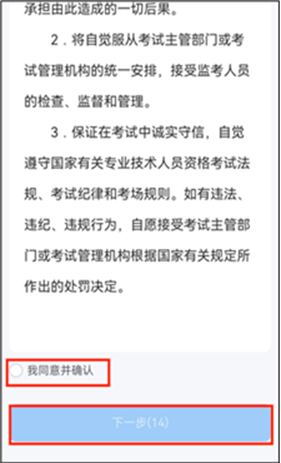3.認真閱讀報考須知,確保充分知曉考試相關規(guī)定和要求,勾選“同意”后點擊“下一步”,進入報名信息填寫頁面。