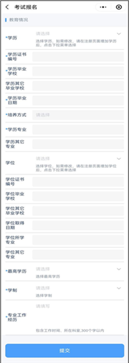 4.按順序填寫報名信息,每項填寫完畢后點擊當頁的“提交”按鈕進入下一頁填寫。