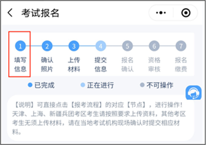 未進行報名確認的考生,可在報名確認結束前撤回信息提交,點擊報考流程中的【填寫信息】節(jié)點,修改相應的報考信息,修改完成后再次提交。