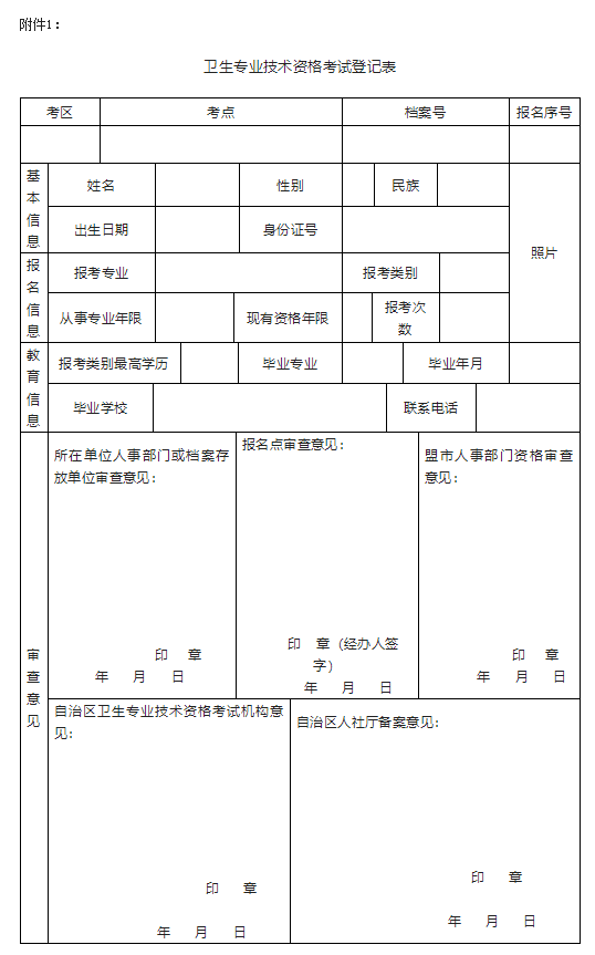 1、《衛(wèi)生專業(yè)技術(shù)資格考試登記表》