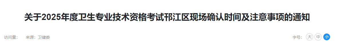 江蘇揚(yáng)州邗江區(qū)2025年度衛(wèi)生資格考試現(xiàn)場確認(rèn)時(shí)間及注意事項(xiàng)的通知