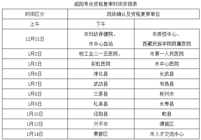 3.2020年衛(wèi)生專業(yè)技術(shù)資格考試咸陽(yáng)考點(diǎn)資格復(fù)審時(shí)間安排表
