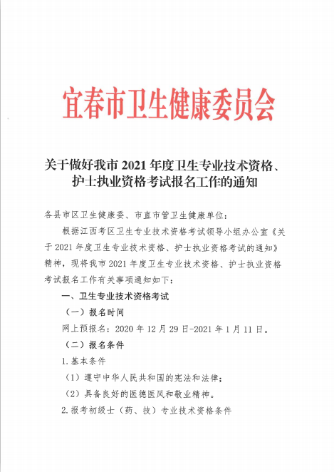 江西宜春關(guān)于做好2021年度衛(wèi)生專業(yè)技術(shù)資格考試報名工作的通知