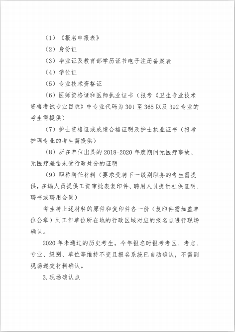 2021年全國衛(wèi)生資格考試現(xiàn)場確認時間、地點、資料匯總