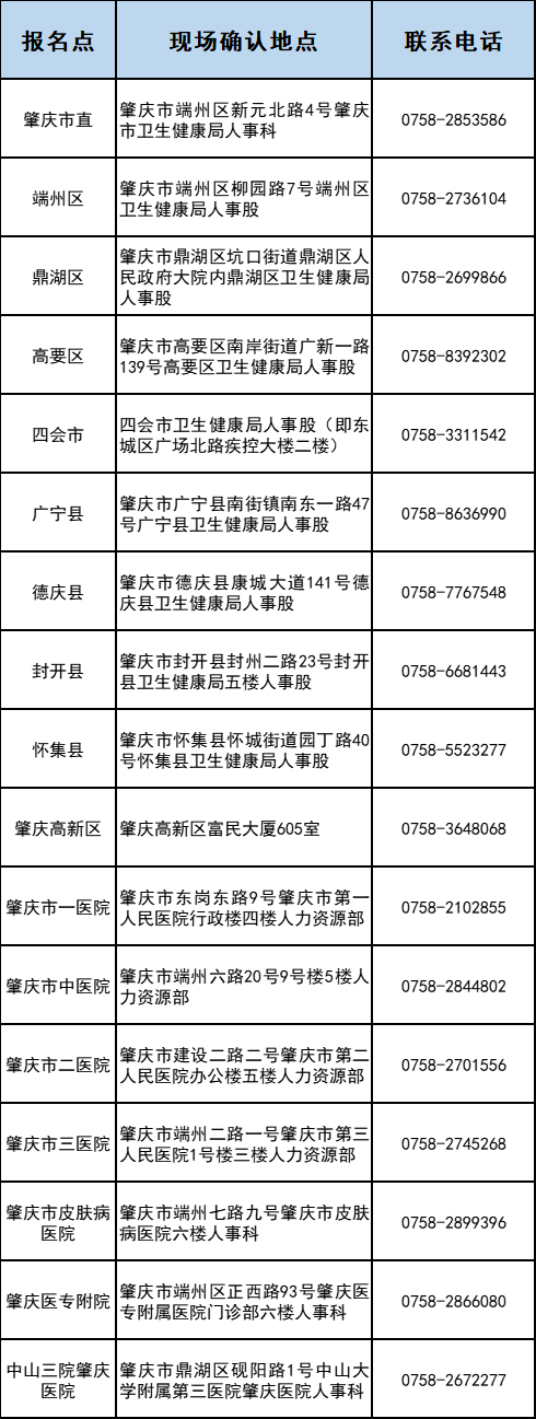 肇慶考點(diǎn)2024年度衛(wèi)生專業(yè)技術(shù)資格考試報(bào)名點(diǎn)現(xiàn)場(chǎng)確認(rèn)信息一覽表