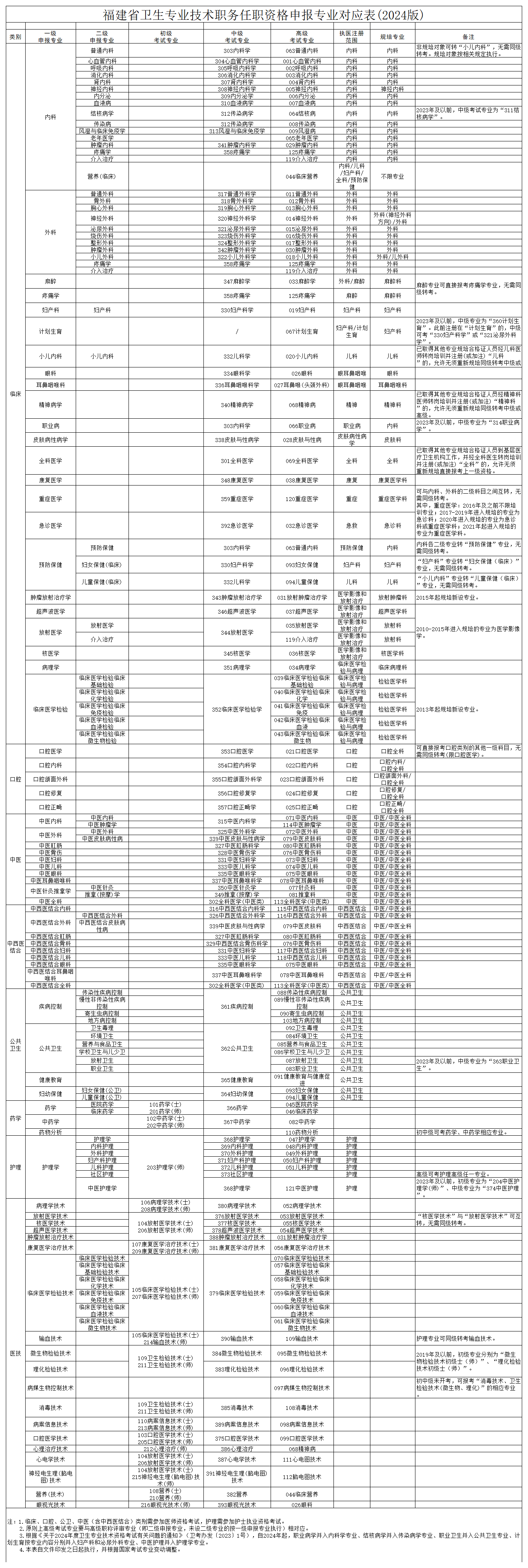 2024年考生參考!福建衛(wèi)生專業(yè)技術(shù)職務(wù)任職資格申報(bào)專業(yè)對應(yīng)表(2024版)