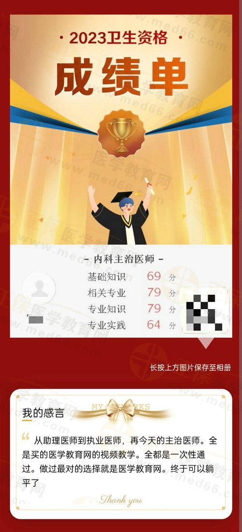 從助理醫(yī)師到執(zhí)業(yè)醫(yī)師,再今天的主治醫(yī)師。全是買的醫(yī)學(xué)教育網(wǎng)的視頻教學(xué)。全都是一次性通過。做過最對的選擇就是醫(yī)學(xué)教育網(wǎng)。終于可以躺平了