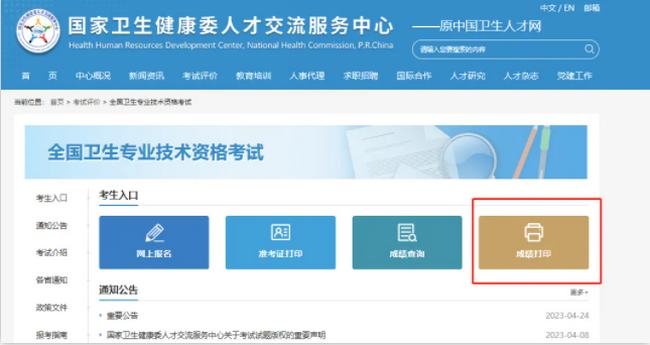 打印入口:國家衛(wèi)健委人才交流服務(wù)中心-成績(jī)打印,進(jìn)入考生管理平臺(tái)后,點(diǎn)擊左側(cè)導(dǎo)航【成績(jī)查詢】頁面打印成績(jī)單。