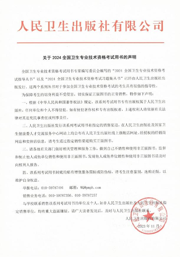 關于全國2024年衛(wèi)生專業(yè)技術資格考試用書的聲明