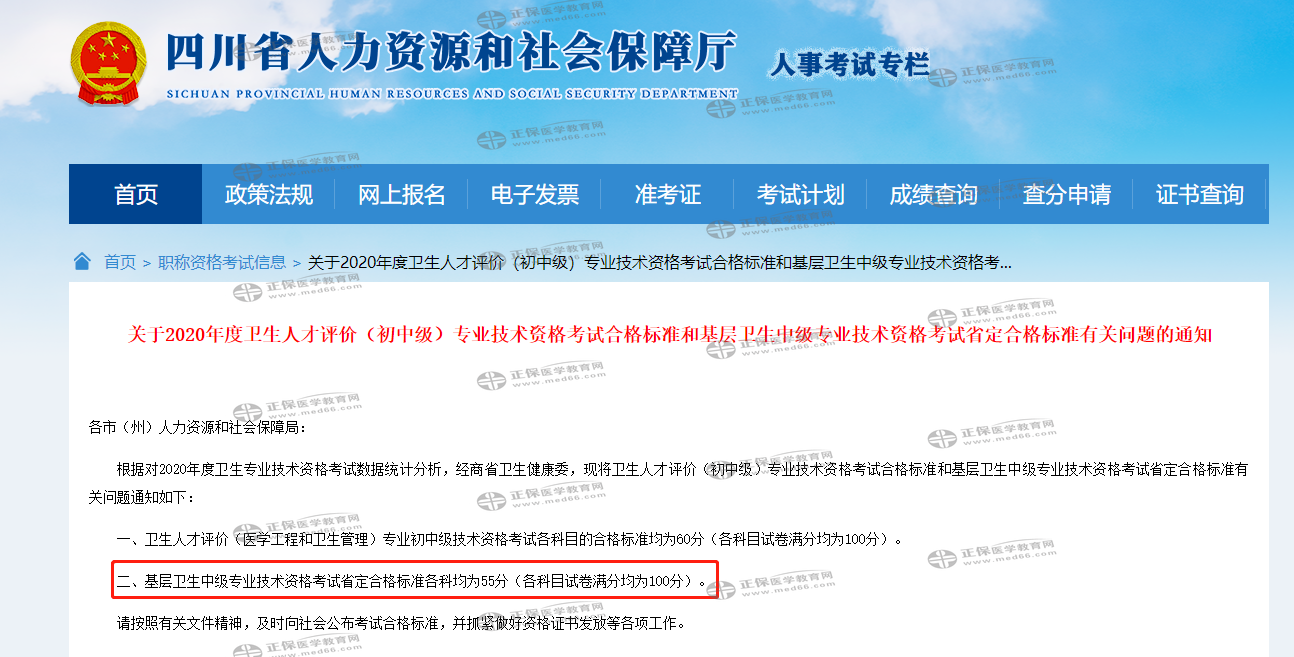 根據(jù)對2020年度衛(wèi)生專業(yè)技術資格考試數(shù)據(jù)統(tǒng)計分析,經(jīng)四川省衛(wèi)生健康委,現(xiàn)將衛(wèi)生人才評價(初中級)專業(yè)技術資格考試合格標準和基層衛(wèi)生中級專業(yè)技術資格考試省定合格標準有關問題通知如下:
