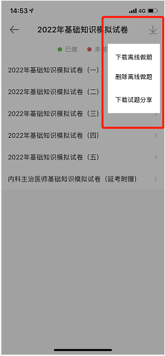 (4)點(diǎn)擊右上角下載箭頭,可下載模擬試卷,離線練習(xí)。