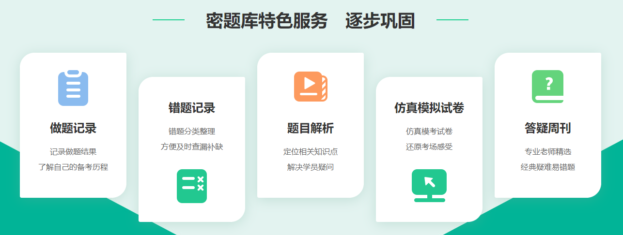 機(jī)械做題,不知如何通過做題提高自己的復(fù)習(xí)狀態(tài)?密題庫特色服務(wù):做題記錄、錯(cuò)題記錄、題目解析、仿真模擬卷,讓您刷題的同時(shí)對知識點(diǎn)的掌握更加透徹!