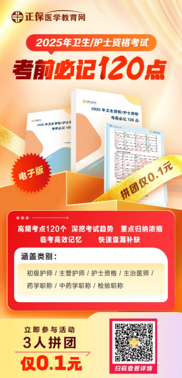 拼團(tuán)僅0.1元!2025年衛(wèi)生/護(hù)士資格《考前必記120點(diǎn)》沖刺必備!