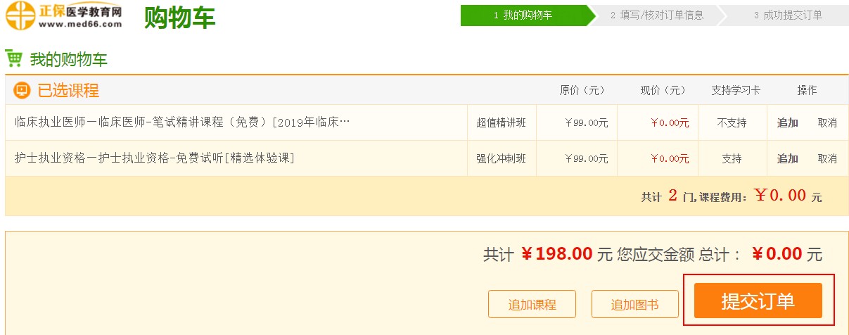 第二步:提交訂單,確認(rèn)支付“0元”;