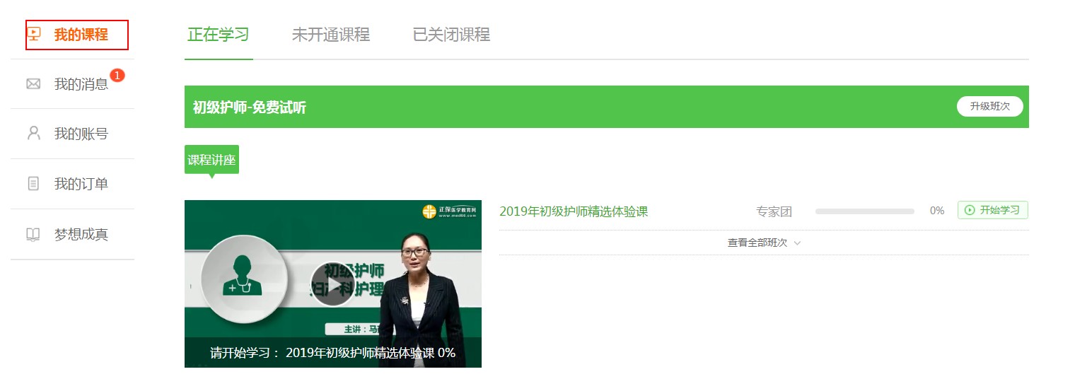 第四步:點擊開始學(xué)習(xí),就可以按照課程目錄學(xué)習(xí)啦!