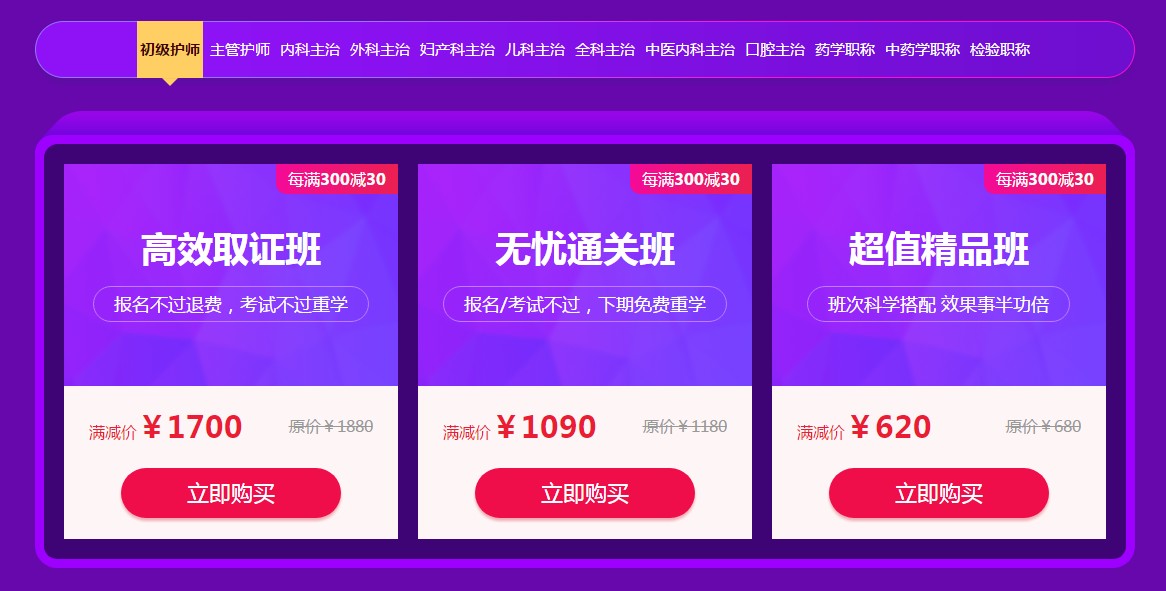 活動期間,所有衛(wèi)生資格考試輔導課程,無論全套班次,還是單科輔導,均可享受每滿300減30的優(yōu)惠。