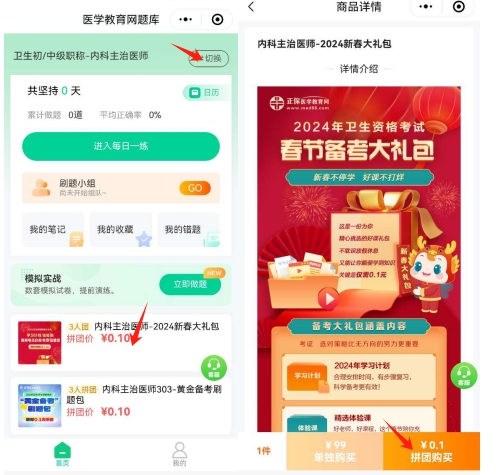 步驟二:選擇自己的備考類別-2024新春大禮包-0.1元拼團(tuán)購(gòu)買即可。