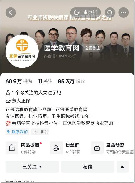 二、抖音號"正保醫(yī)學教育網(wǎng)官方"