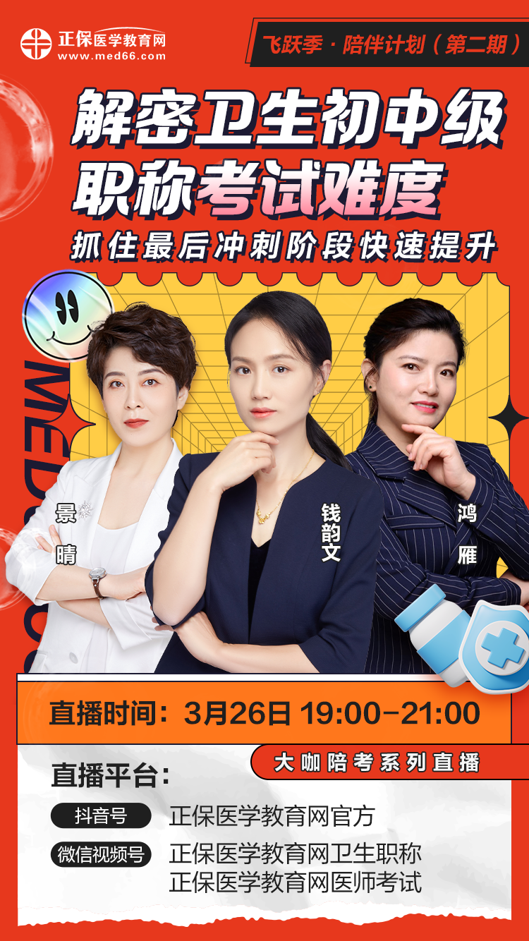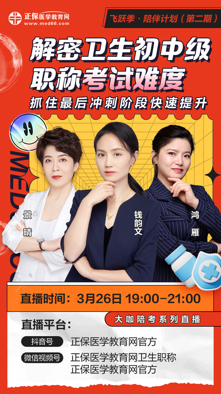 2024年衛(wèi)生初中級職稱考試已經(jīng)進入沖刺階段,臨近考試你是否感到焦慮不知所措?是否感到復習效率低下?是否感到不能完全掌握考試情況?不用焦慮不安,醫(yī)學教育網(wǎng)3月26日開啟考前問診,錢韻文/景晴/鴻雁老師在線連麥暢談,解密衛(wèi)生初中級職稱考試難度,抓住最后沖刺階段快速提升!記得準時來參加!