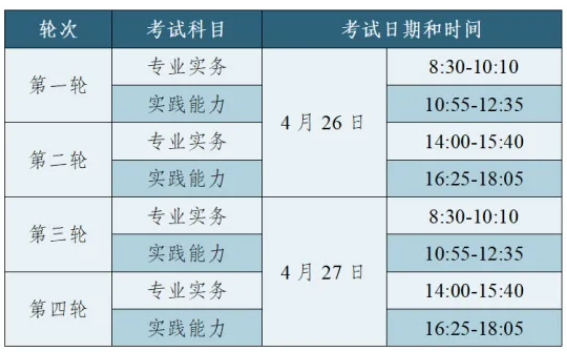 護理學(中級,專業(yè)代碼368)專業(yè)考試時間為4月13、19、20日,考生參加其中一天的考試,具體時間以準考證為準。