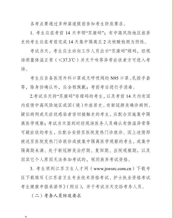 江蘇省2020年衛(wèi)生資格考試疫情防護(hù)疫情防控工作指南