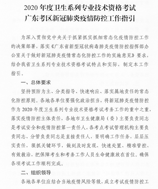 廣東考區(qū)2020年衛(wèi)生資格考試疫情防控工作指引及應(yīng)急處理預(yù)案