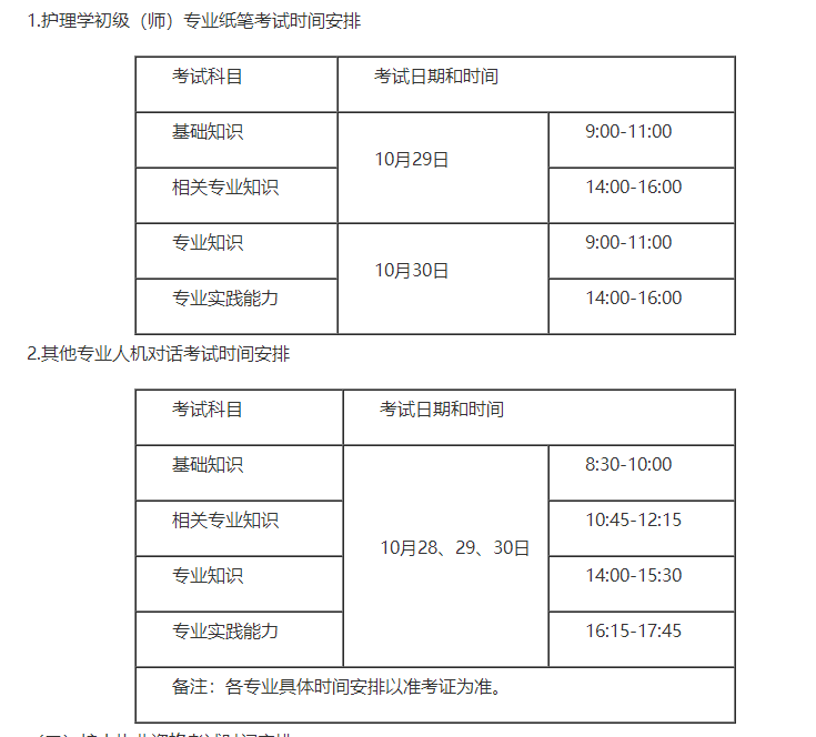 (一)衛(wèi)生專業(yè)技術(shù)資格考試時(shí)間安排