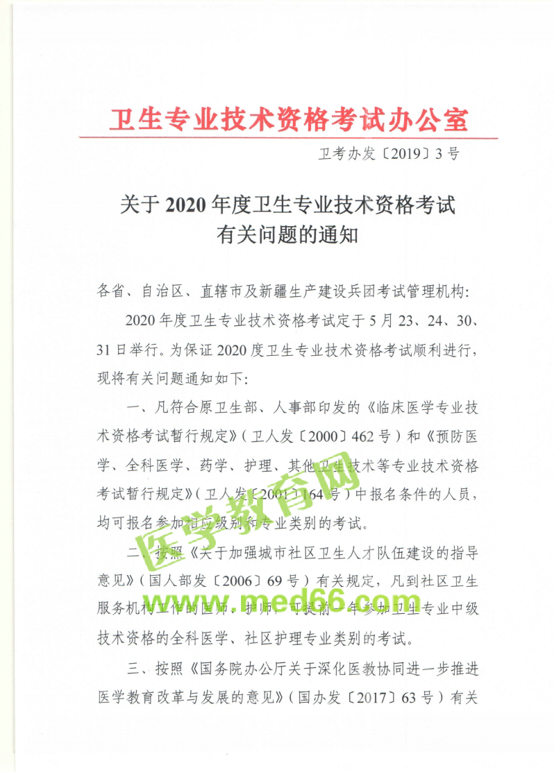 重要通知!中國衛(wèi)生人才網(wǎng)2020年度衛(wèi)生專業(yè)技術(shù)資格考試安排已經(jīng)公布,紙筆考試時(shí)間為5月23、24日,人機(jī)考試時(shí)間為5月23日、24日、30日、31日。為了幫助大家及時(shí)了解情況,醫(yī)學(xué)教育網(wǎng)為大家整理相關(guān)通知如下: