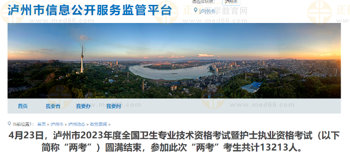 瀘州市信息公開服務(wù)監(jiān)管平臺(tái)發(fā)布4月23日,瀘州市2023年度全國衛(wèi)生專業(yè)技術(shù)資格考試暨護(hù)士執(zhí)業(yè)資格考試(以下簡稱“兩考”)圓滿結(jié)束,參加此次“兩考”考生共計(jì)13213人。醫(yī)學(xué)教育網(wǎng)整理具體內(nèi)容如下: