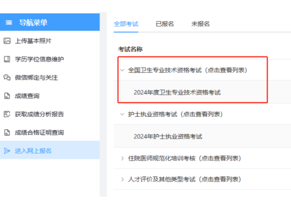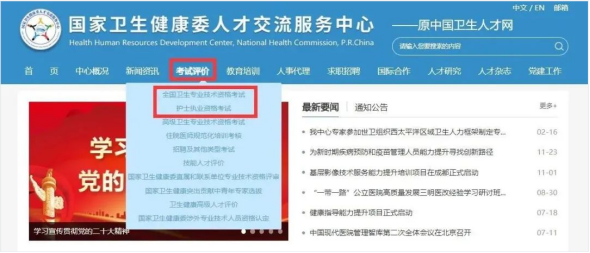 (一)登錄國家衛(wèi)生健康委人才交流服務(wù)中心網(wǎng)站(www.21wecan.com),在“考試評價”欄目內(nèi)選擇相應(yīng)的考試。