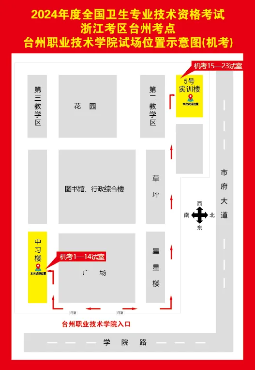 考場地址:臺州職業(yè)技術學院中習樓和5號實訓樓(椒江區(qū)學院路788號)