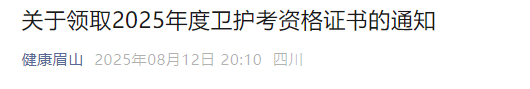 眉山關于領取2025年度衛(wèi)生資格證書的通知
