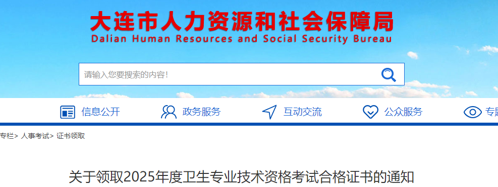 大連市關于領取2025年度衛(wèi)生專業(yè)技術(shù)資格考試合格證書的通知