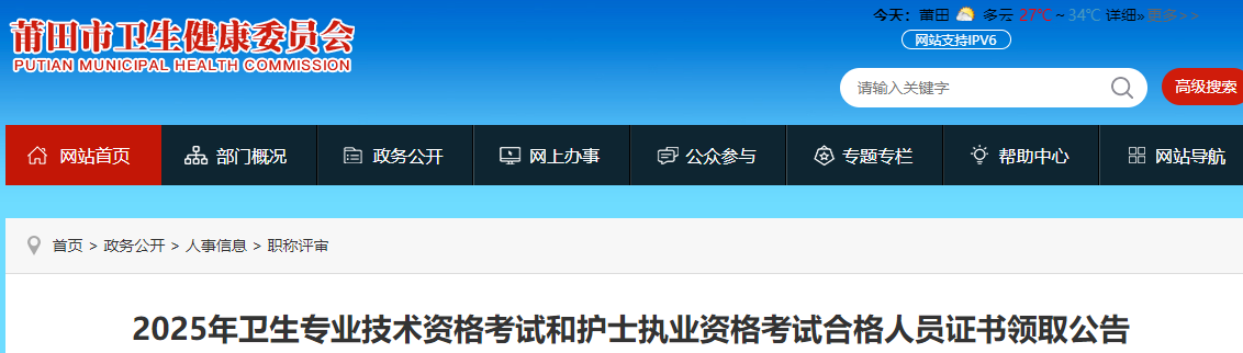 莆田2025年衛(wèi)生專業(yè)技術(shù)資格考試合格人員證書領(lǐng)取公告