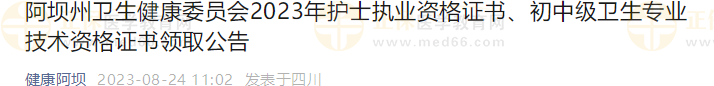 阿壩州2023年初中級衛(wèi)生專業(yè)技術(shù)資格證書領(lǐng)取公告
