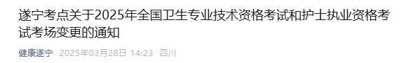 【四川遂寧】關(guān)于2025年全國衛(wèi)生專業(yè)技術(shù)資格考試和護(hù)士執(zhí)業(yè)資格考試考場變更的通知